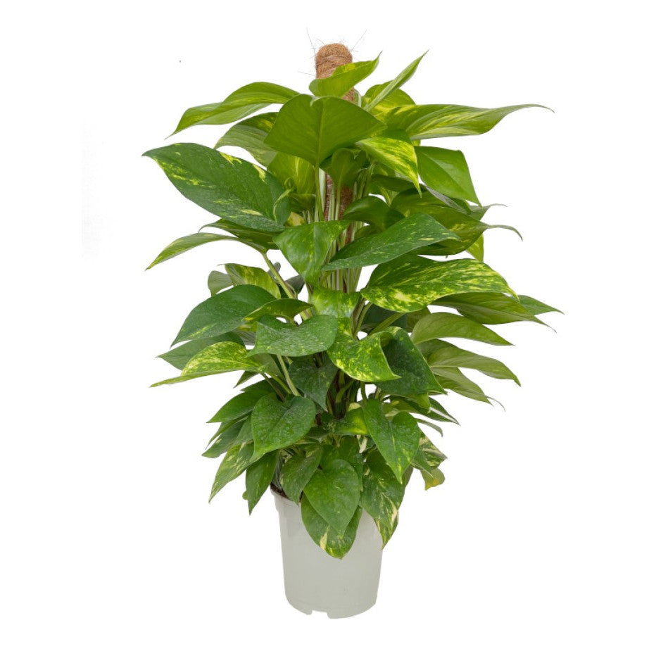 Gracias al tutor central, esta versión del Epipremnum aureum es perfecta para colocar directamente en el suelo, sobre una mesa baja o junto a una estantería. Su porte ordenado y frondoso aporta altura y vida a cualquier espacio.